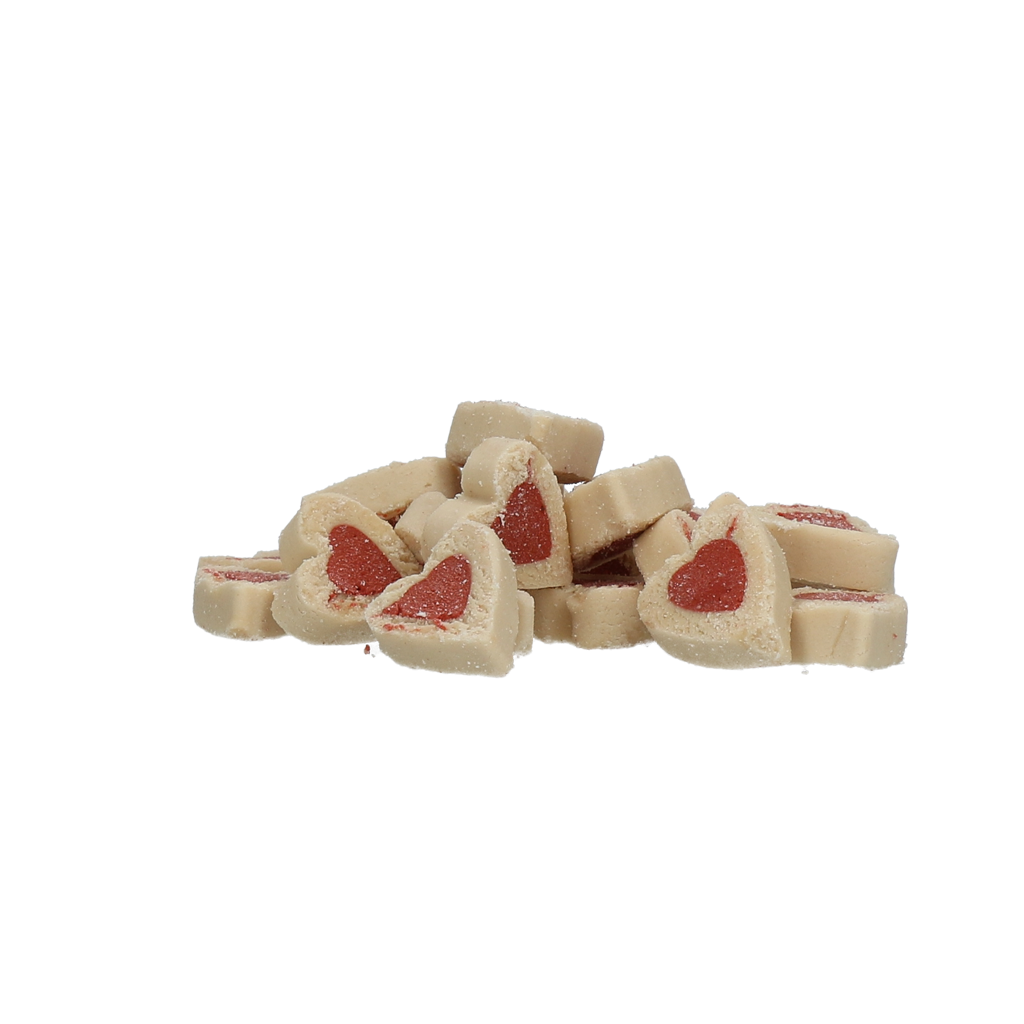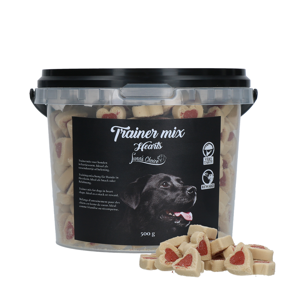 Het enige wat je nodig hebt is liefde! Van deze surf- en turf-snack houdt iedere hond! Deze trainer-snack is gevuld met vlees en zalm en is een halfvochtige zachte beloning. Dit houdt in dat deze snacks nog licht vochtig zijn en extreem krachtig zijn in smaak en geur. Daarom zijn dit ook de ideale snacks voor hondentrainers en baasjes om hun honden en pups te belonen bij goed gedrag tijdens een training of cursus. Deze trainer-snack bevat geen toegevoegde suikers en het mooiste van alles is dat deze snoepjes zijn gemaakt in Nederland!