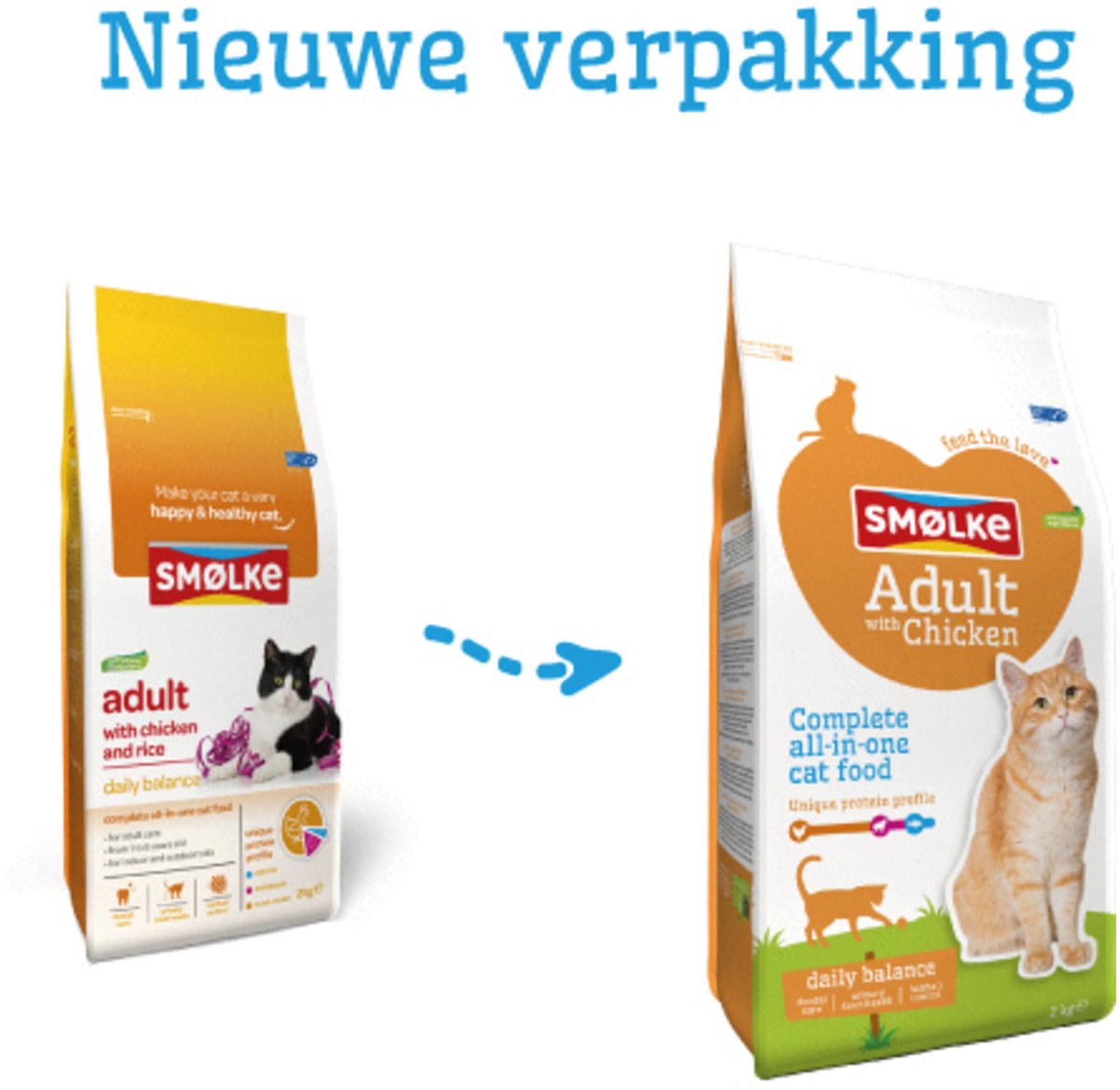 Smølke Adult with Chicken is een complete Alles-in-één kattenvoeding afgestemd op de behoefte van volwassen katten vanaf ongeveer 12 maanden.