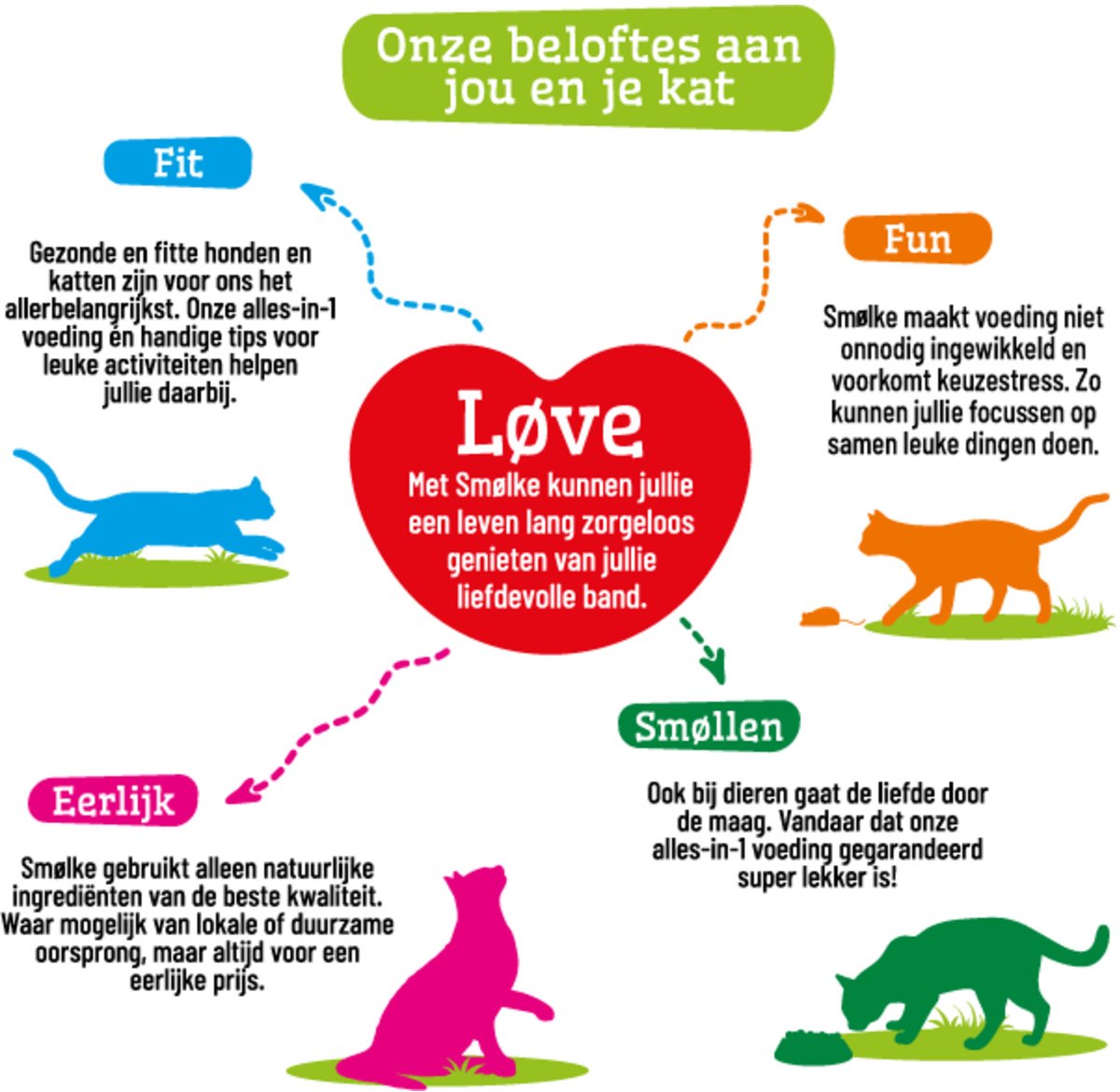 Door Smolke te voeren weet je zeker dat je jouw kat alles geeft wat hij nodig heeft. Zo kun jij je focussen op leuke dingen doen samen met je kat!